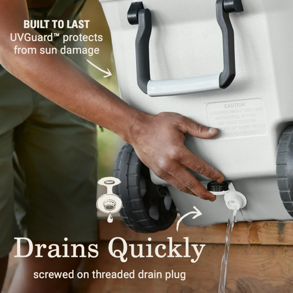 Meet the Atlas Series Coolers—thoughtfully designed for weekends on the water and rallying on the sidelines. The Atlas Series 100-Quart Marine Cooler With Wheels is made to be on deck all day long—that’s why we added a UVGuard™ coating to protect against the sun’s damaging rays. Plus, the stainless steel hardware resists rust while you’re reeling in the day’s catch.