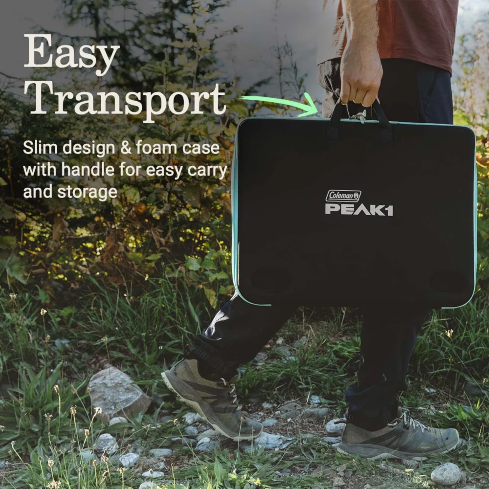 Elevate your next camping trip with the PEAK1™ Collection—premium gear designed to inspire and built for those making the most of the outside. Influenced by up-mountain design, the PEAK1 2-Burner Camping Stove​​ makes it easy to cook great meals outdoors. Because we know that when you’re on this adventure you’re planning the next one, we made sure the durable cast-iron design is easy to clean. Every bit of space counts when packing, so this portable stove has a slim profile to save you room, as well as a sturdy handle, and a foam case.