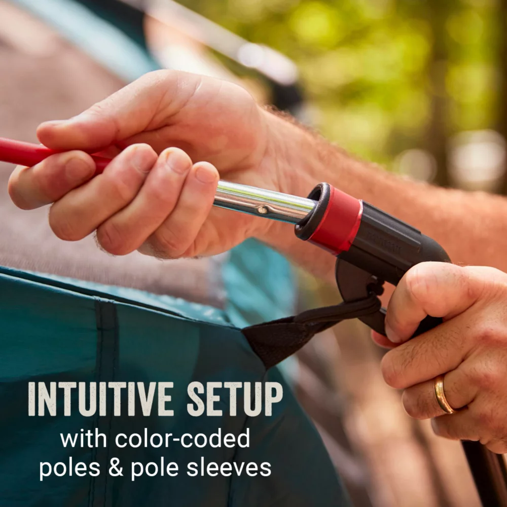 • Color-coded poles and pole sleeves provide easy, intuitive setup